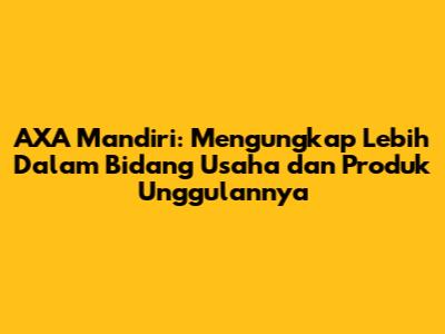 AXA Mandiri adalah nama yang sudah tidak asing lagi di dunia asuransi dan keuangan di Indonesia. Tapi, guys, pernahkah kalian benar-benar menggali lebih dalam tentang apa yang ditawarkan oleh perusahaan ini? Apa saja bidang usaha yang mereka geluti, dan produk-produk unggulan apa saja yang bisa menjadi solusi bagi kebutuhan finansial kita? Mari kita bedah tuntas, mulai dari sejarah, bidang usaha, hingga produk-produk asuransi yang ditawarkan oleh AXA Mandiri. Siap-siap, karena kita akan menjelajahi dunia perlindungan finansial yang ditawarkan oleh salah satu pemain utama di industri ini!