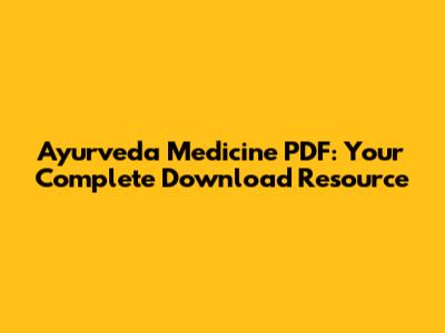 Ayurveda Medicine PDF: Your Complete Download Resource