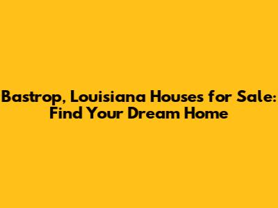 Hey guys! Are you on the hunt for Bastrop, Louisiana houses for sale? Well, you've landed in the right spot! Whether you're a first-time homebuyer, looking to upgrade, or just searching for that perfect Southern escape, Bastrop has something to offer. Let's dive into the real estate scene in this charming Louisiana town and explore what makes it such a great place to live.