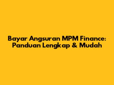 Bayar Angsuran MPM Finance: Panduan Lengkap & Mudah