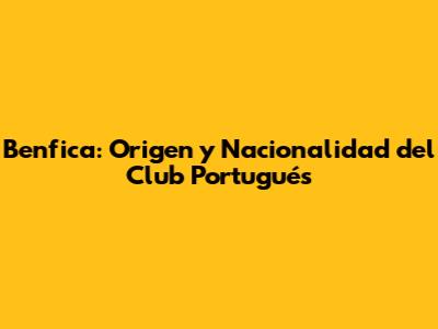 Benfica: Origen Y Nacionalidad Del Club Portugués
