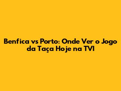 Benfica Vs Porto: Onde Ver O Jogo Da Taça Hoje Na TVI