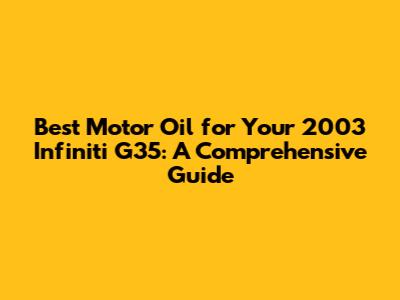 Choosing the best motor oil for your 2003 Infiniti G35 is a crucial part of maintaining your car's performance and longevity. By understanding the different oil types, viscosity recommendations, and oil change intervals, you can ensure your G35 runs smoothly for years to come. Remember to check your owner's manual for specific recommendations, and don't hesitate to ask a trusted mechanic for advice. Regular oil changes and using the right oil are small investments that will pay off big time in the long run. Enjoy the ride, and keep that G35 purring!