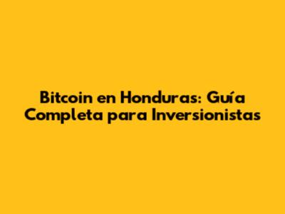 Bitcoin En Honduras: Guía Completa Para Inversionistas
