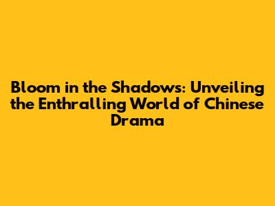 Hey everyone! Ever heard of Bloom in the Shadows? If you're a fan of Chinese dramas, or C-dramas as we affectionately call them, then this is one title you absolutely need to have on your radar. This series, a real gem in the vast world of Chinese television, has captured the hearts of viewers with its captivating storyline, stunning visuals, and performances that'll leave you breathless. We're talking about a drama that delves into complex themes, showcasing the best of Chinese storytelling. Let's dive deep into what makes Bloom in the Shadows so special, shall we?
