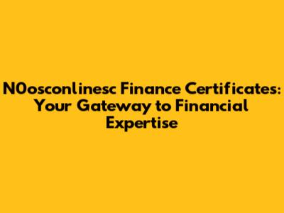 How to Choose the Right N0osconlinesc Finance Certificate
