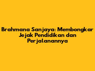 Brahmana Sanjaya: Jejak Pendidikan & Perjalanannya
