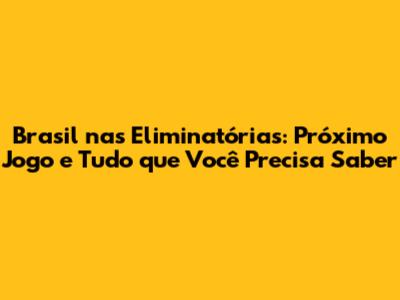 E aí, preparados para torcer pelo Brasil nas Eliminatórias? Espero que este guia tenha te deixado por dentro de tudo o que você precisa saber sobre o próximo jogo da nossa seleção. Lembre-se, cada partida é uma nova emoção, uma nova chance de vibrar e celebrar o futebol. Acompanhe o Brasil, faça parte da história e torça por mais uma vitória rumo à Copa do Mundo! Vamos juntos nessa jornada! A Seleção Brasileira conta com o apoio de todos nós para alcançar mais um título mundial.