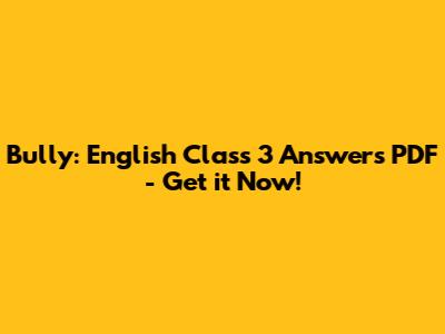 Bully: English Class 3 Answers PDF - Get It Now!