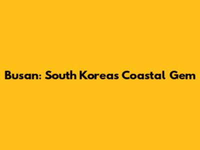 Busan: South Korea's Second-Largest City