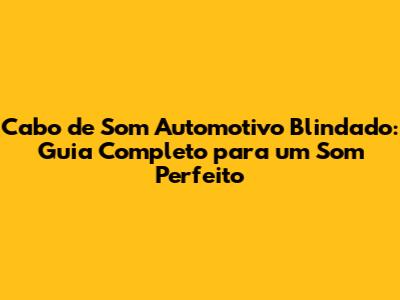 Cabo De Som Automotivo Blindado: Guia Completo Para Um Som Perfeito