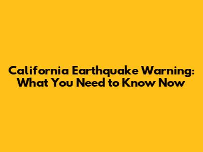 California Earthquake Warning: What You Need To Know Now