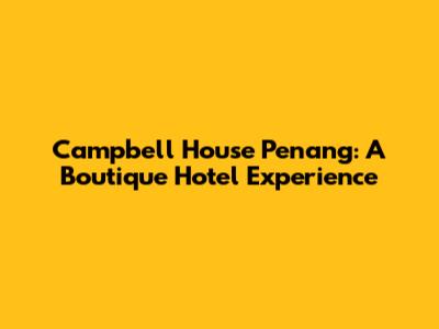 Hey guys! Let's dive into a charming spot in the heart of George Town, Penang – the Campbell House. If you're planning a trip and looking for a place that blends history with luxury, this might just be your perfect home away from home. Nestled in a beautifully restored heritage building, Campbell House offers a unique boutique hotel experience that's hard to forget. Let’s explore what makes this place so special, from its historical significance to its modern-day comforts.