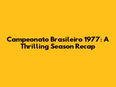 Campeonato Brasileiro 1977: A Thrilling Season Recap
