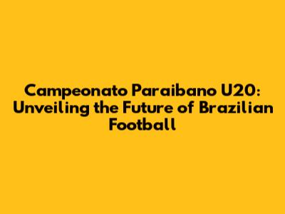 Campeonato Paraibano U20: Your Guide To Brazilian Football's Future Stars