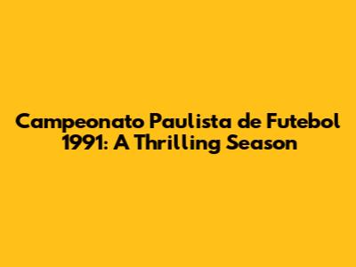 Campeonato Paulista De Futebol 1991: A Thrilling Season
