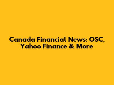 Canada Financial News: OSC, Yahoo Finance & More