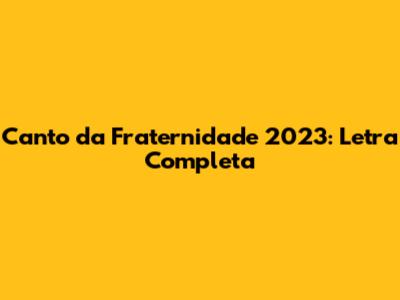 A Letra Completa do Canto da Fraternidade 2023