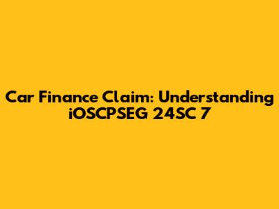 Car Finance Claim: Understanding IOSCPSEG 24SC 7