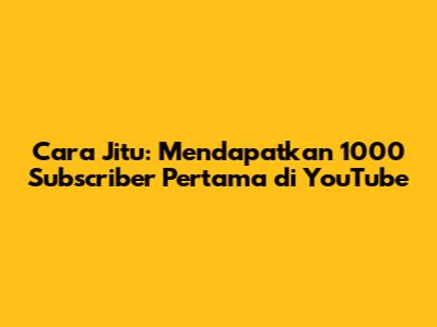 Cara Jitu: Mendapatkan 1000 Subscriber Pertama Di YouTube
