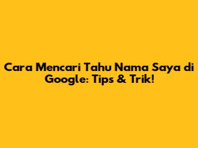 Cara Mencari Nama Saya Di Google: Tips & Trik!