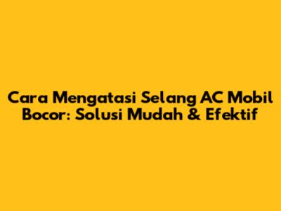 Cara Mengatasi Selang AC Mobil Bocor: Solusi Mudah & Efektif