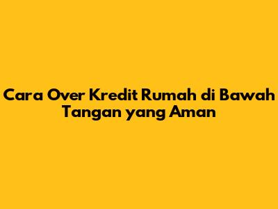 Cara Over Kredit Rumah Di Bawah Tangan Yang Aman