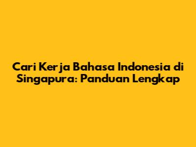 Cari Kerja Bahasa Indonesia Di Singapura: Panduan Lengkap