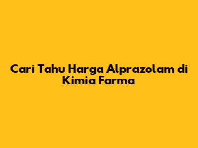 Cari Tahu Harga Alprazolam Di Kimia Farma