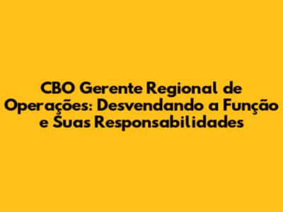 CBO Gerente Regional De Operações: Guia Completo