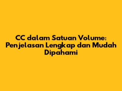 CC adalah satuan volume yang penting untuk dipahami, terutama dalam konteks otomotif. Dengan memahami kepanjangan CC dan bagaimana cara kerjanya, kamu dapat lebih mudah memahami spesifikasi mesin kendaraan dan memilih kendaraan yang sesuai dengan kebutuhanmu. Selain itu, pengetahuan tentang satuan volume lainnya seperti liter dan mililiter juga sangat berguna dalam kehidupan sehari-hari.