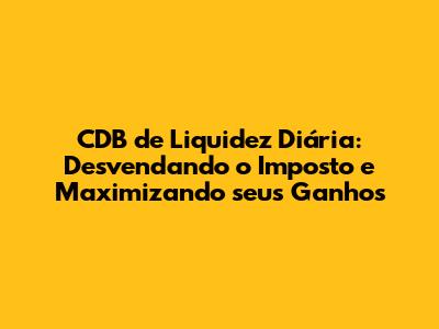 CDB De Liquidez Diária: Entenda O Imposto E Invista Com Sabedoria
