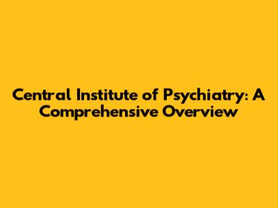 Central Institute Of Psychiatry: A Comprehensive Overview