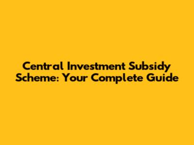 Central Investment Subsidy Scheme: Your Complete Guide