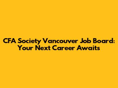 CFA Vancouver Job Board: Your Next Career Awaits