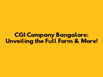 CGI Bangalore: Unveiling The Full Form & More!