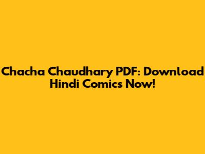 Chacha Chaudhary PDF: Download Hindi Comics Now!