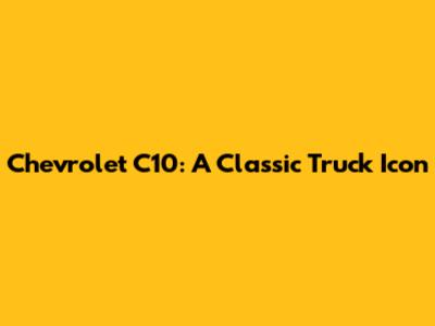 Chevrolet C10: A Classic Truck Icon