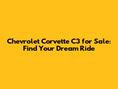 Chevrolet Corvette C3 For Sale: Find Your Dream Ride
