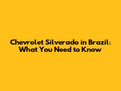 Chevrolet Silverado In Brazil: What You Need To Know