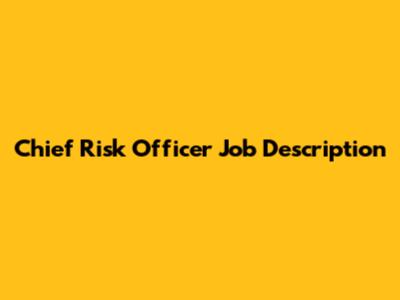 Chief Risk Officer Job Description: Key Responsibilities
