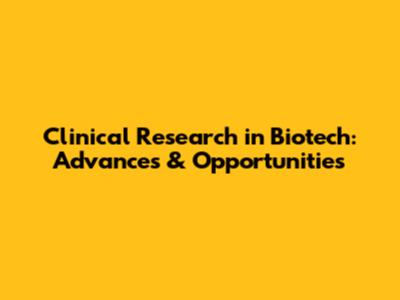 Clinical Research In Biotech: Advances & Opportunities