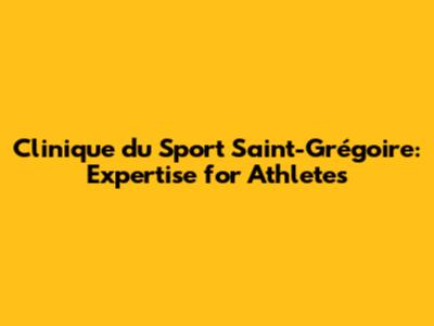 Clinique Du Sport Saint-Grégoire: Expertise For Athletes