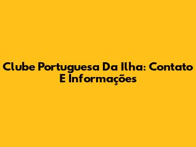 Clube Portuguesa Da Ilha: Contato E Informações