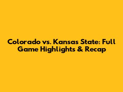 Colorado Vs. Kansas State: Full Game Highlights & Recap