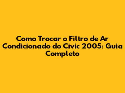 Como Trocar O Filtro De Ar Condicionado Do Civic 2005: Guia Completo