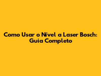 Como Usar O Nível A Laser Bosch: Guia Completo
