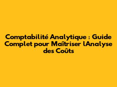 Comptabilité Analytique : Guide Complet Pour Maîtriser L'Analyse Des Coûts