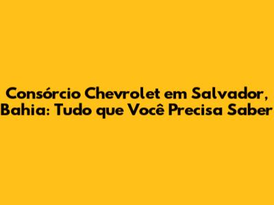Consórcio Chevrolet Em Salvador, Bahia: Guia Completo