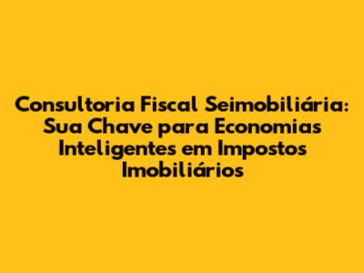 Consultoria Fiscal Seimobiliária: Maximizando Economias Em Impostos Imobiliários